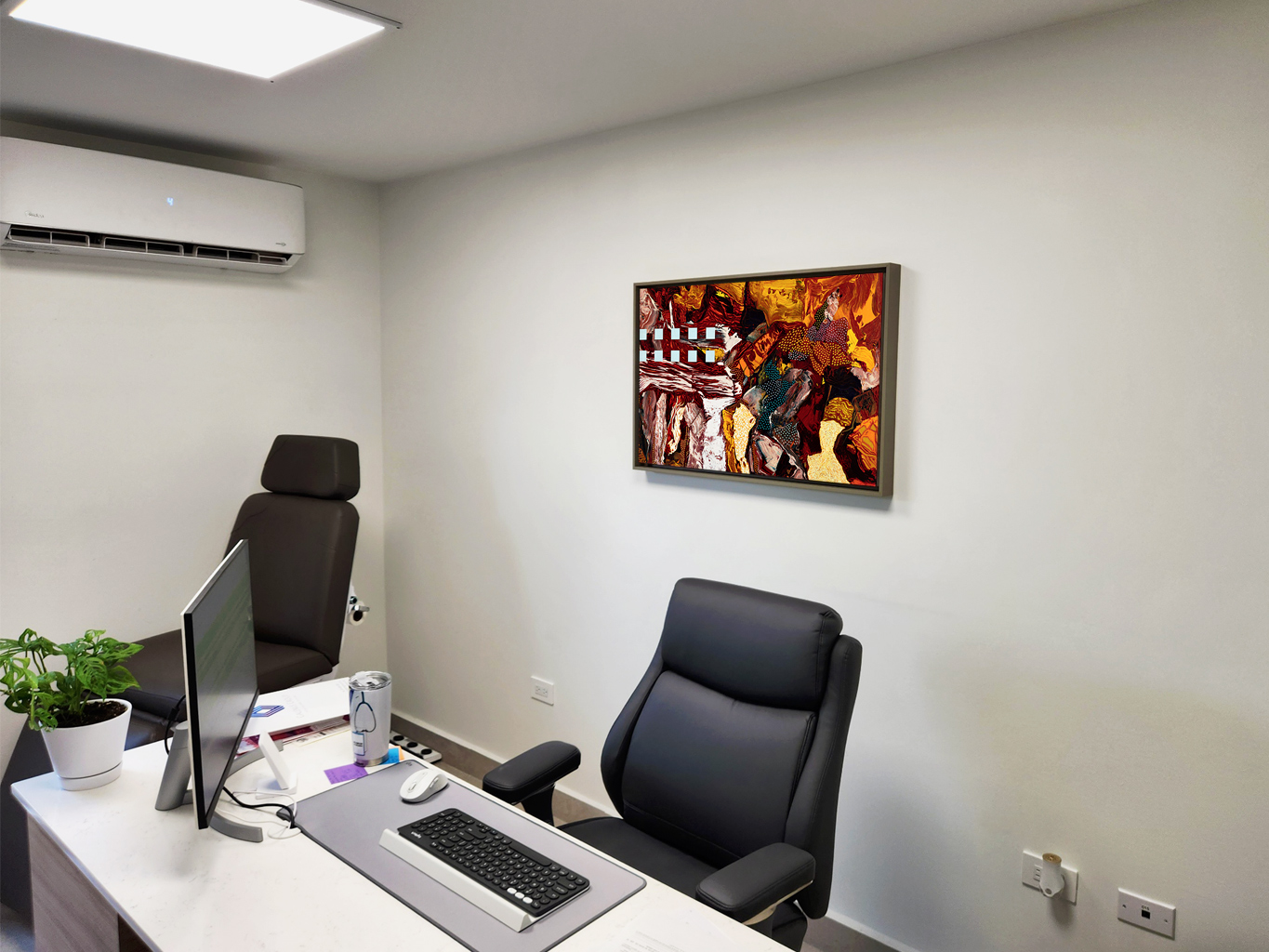 - Pequeña enmarcada = $225.00 • Estrechada en bastidor, enmarcada en moldura flotante. Para entrega en persona en Puerto Rico.