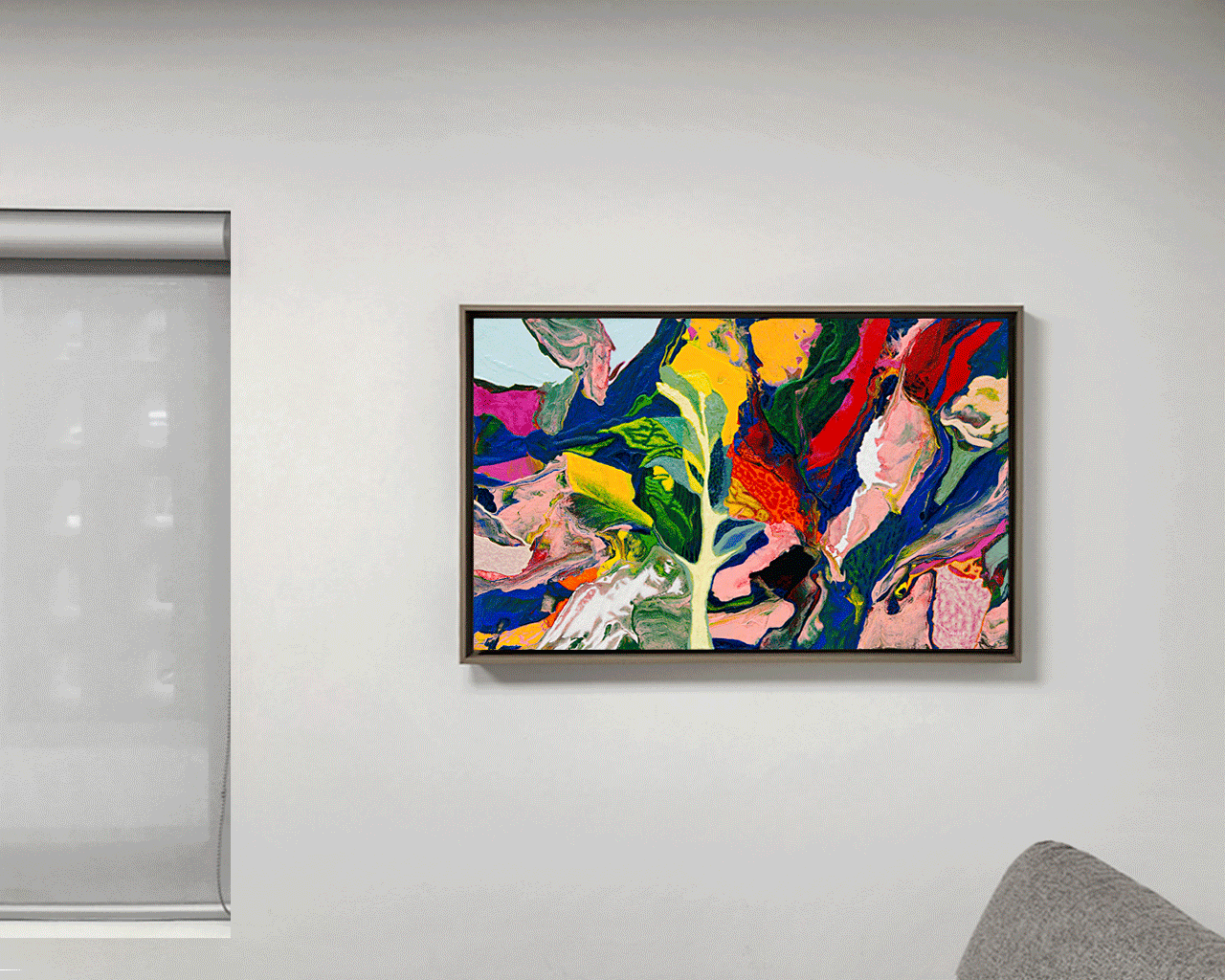 - Mediana enmarcada = $350.00 • Estrechada en bastidor, enmarcada en moldura flotante. Para entrega en persona en Puerto Rico.